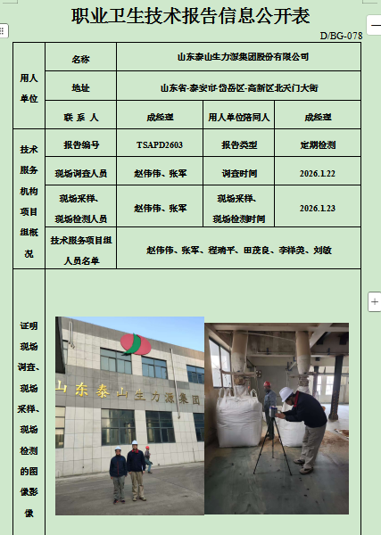 山东泰山生力源集团股份有限公司职业卫生定期检测